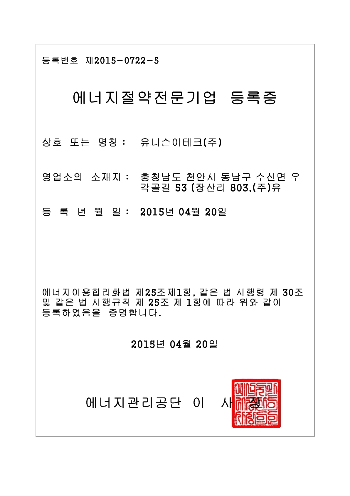 ESCO registration newly issued on May 20th, 2016. This was related to our New & Renewable energy business division.
