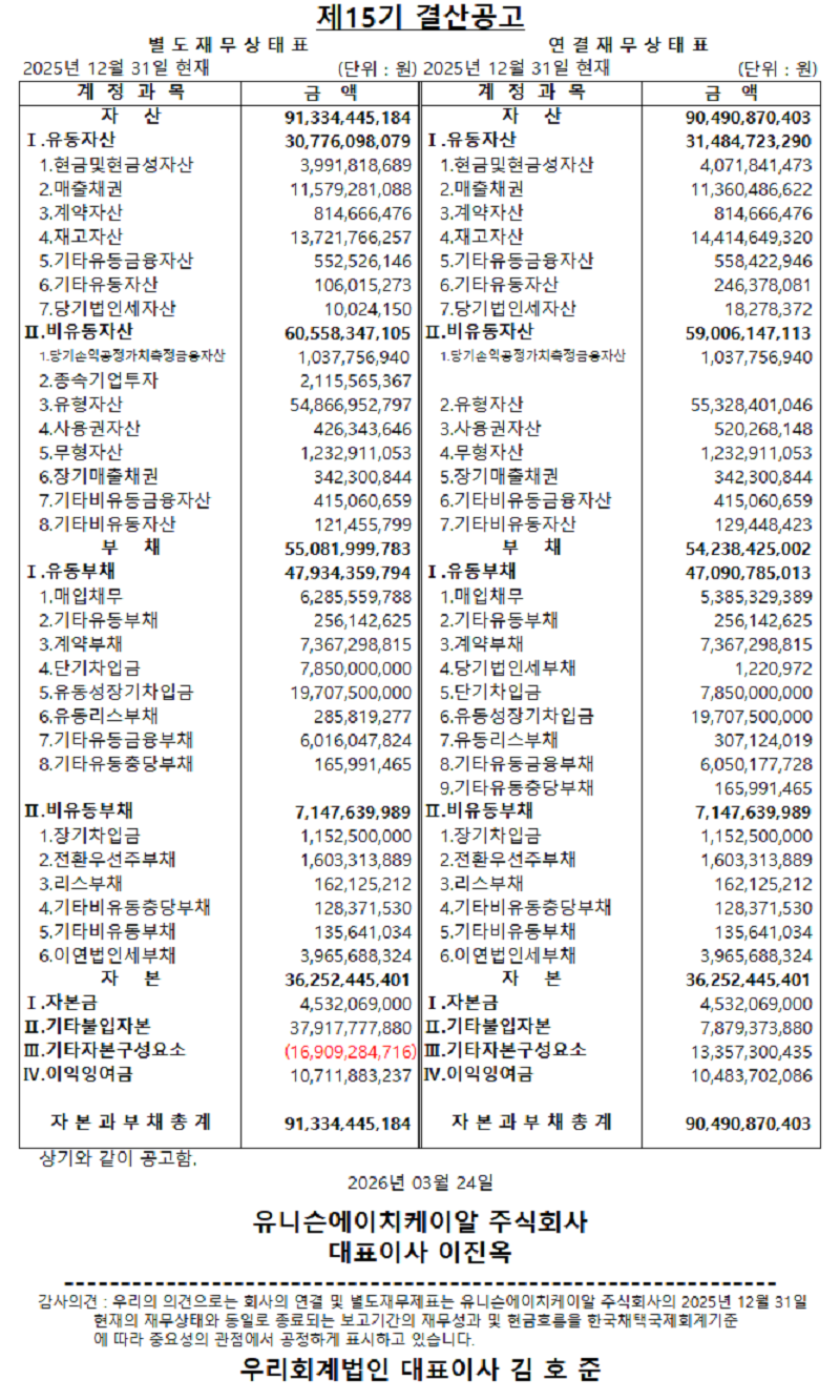 [공고] 제15기 결산공고